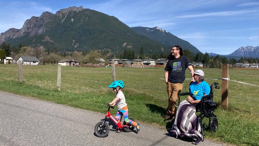 Then Daisy, who works for the Bellingham fire department. She recently got married to an amazing man, Mark and became stepmom to two wonderful children, Morgan and Merritt. Together they are working on building their dreams. They’re planning and building a tiny home on the property they bought in Whatcom County, so between building a tiny home and working, they come and spend time with me. They like to sit with me and talk to me and take me on walks.
